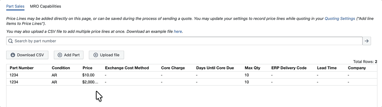 We’ve expanded Autoquote support to handle multiple stock lines for the same part and condition. You can now maintain more than one Price Line for an identical part number and condition combination, differentiated by Stock Line. Autoquote rules can be configured to quote all matching stock lines, or automatically select the one expiring soonest or latest.